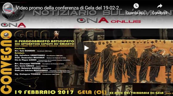 Gela – Domenica 19 febbraio, 2017 a partire dalle ore 9 e 30, in viale Mediterraneo, 41 (presso la ex sede del Tribunale di Gela), avrà luogo il convegno “Amianto: il genocidio dei lavoratori e cittadini di Gela”.